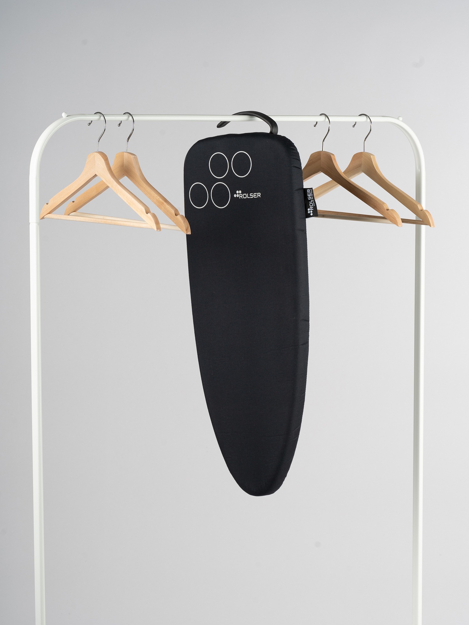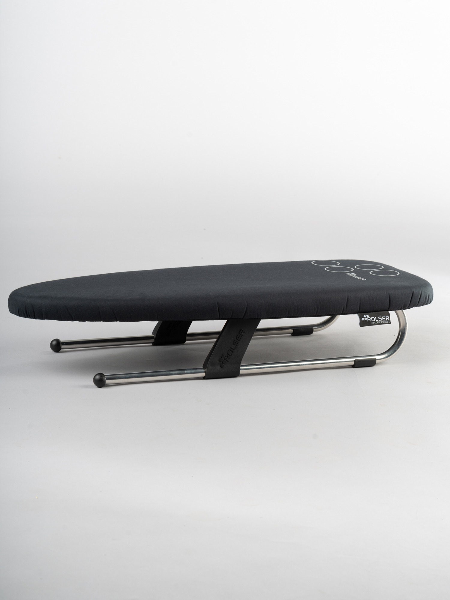 K-MINI SURF. Tabla plegable de sobremesa. Centro de planchado Mini de plegado compacto, para guardar en espacios pequeños y con percha para colgar en el armario. Superficie de planchado de polímero técnico de origen reciclado que permite dejar de emitir 4.5 kg. de CO2 a la atmósfera. Perforada de una sola pieza, especial vapor. Resistente a altas temperaturas y a la corrosión. Gran voladizo delantero para un fácil planchado, incluso con sus dimensiones. Suficientemente ancha para planchar todo tipo de prendas; pantalones, blusas, camisa, etc.. patas de fácil plegado, en aluminio, con puntos de apoyo de plástico antideslizantes para mejorar la tracción, evitar ruidos y posibles ralladuras en la superficie de apoyo. Dimensiones 290 x 40 x 720 mm. Dimensiones tabla: 290 x 720 mm. Peso: 1,5 kg. Tejido especial K-MINI SURF de Algodón con recubrimiento técnico resistente a altas temperaturas y tejido muletón. Disponible en 2 colores; negro y plata. La tabla perfecta para espacios pequeños. No necesitas mucho espacio para el cuidado de tu ropa.