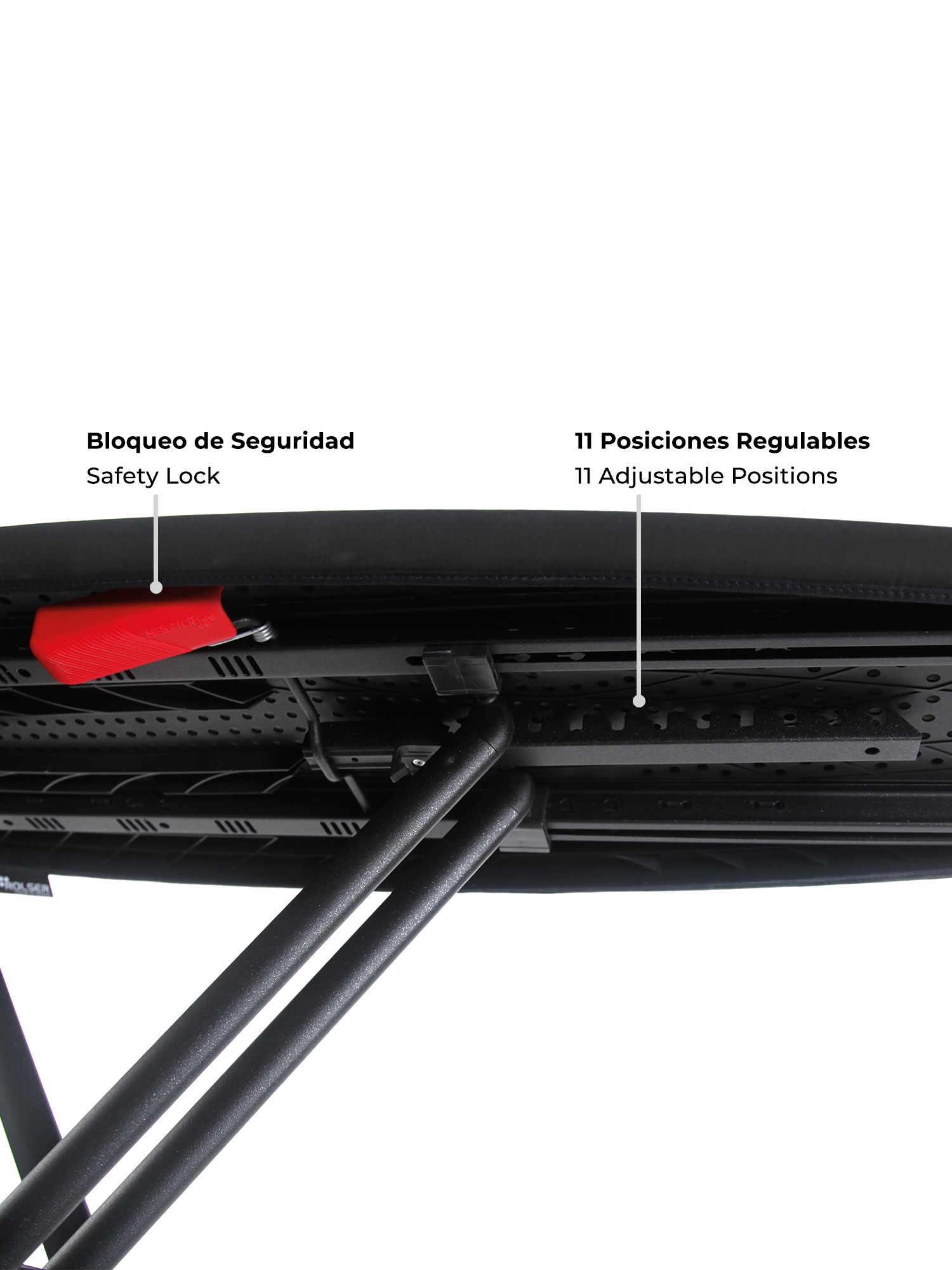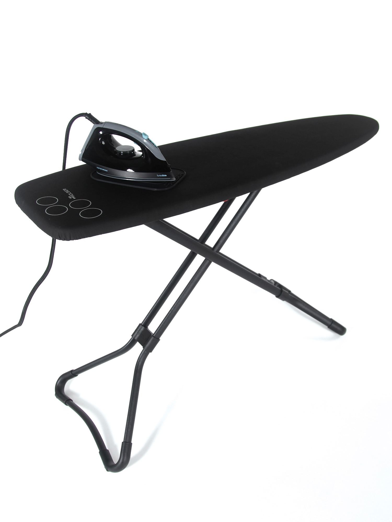 Preparados para coger la siguiente ola! Diseño innovador, líneas aerodinamicas y funcionales. Con 11 posiciones regulables y de fácil plegado. Tabla de estructura completa en color negro. Superfície de planchado de polímero técnico de origen reciclado que permite dejar de emitir 8 kg. de CO2 a la atmósfera. Perforada de una sola pieza, especial vapor. Resistente a altas temperaturas. Altura regulable en varias posiciones y con bloqueo de seguridad. Patas en acero, con puntos de apoyo de plástico para mejorar la tracción y evitar ruidos. Altura máxima en uso: 960 mm. Mínima en uso 580 mm. Dimensiones 455 x 75 x 1485 mm. Dimensiones tabla: 370 x 1300 mm. Peso: 6 kg. Tejido especial K-SURF de Algodón con recubrimiento técnico resistente a altas temperaturas y tejido muletón. La tabla incluye una base de silicona para apoyar la plancha, con superficie antideslizante y resistente a altas temperaturas. Protege la funda y se puede limpiar con un paño húmedo. No dejar la plancha encendida sobre la base sin vigilancia.