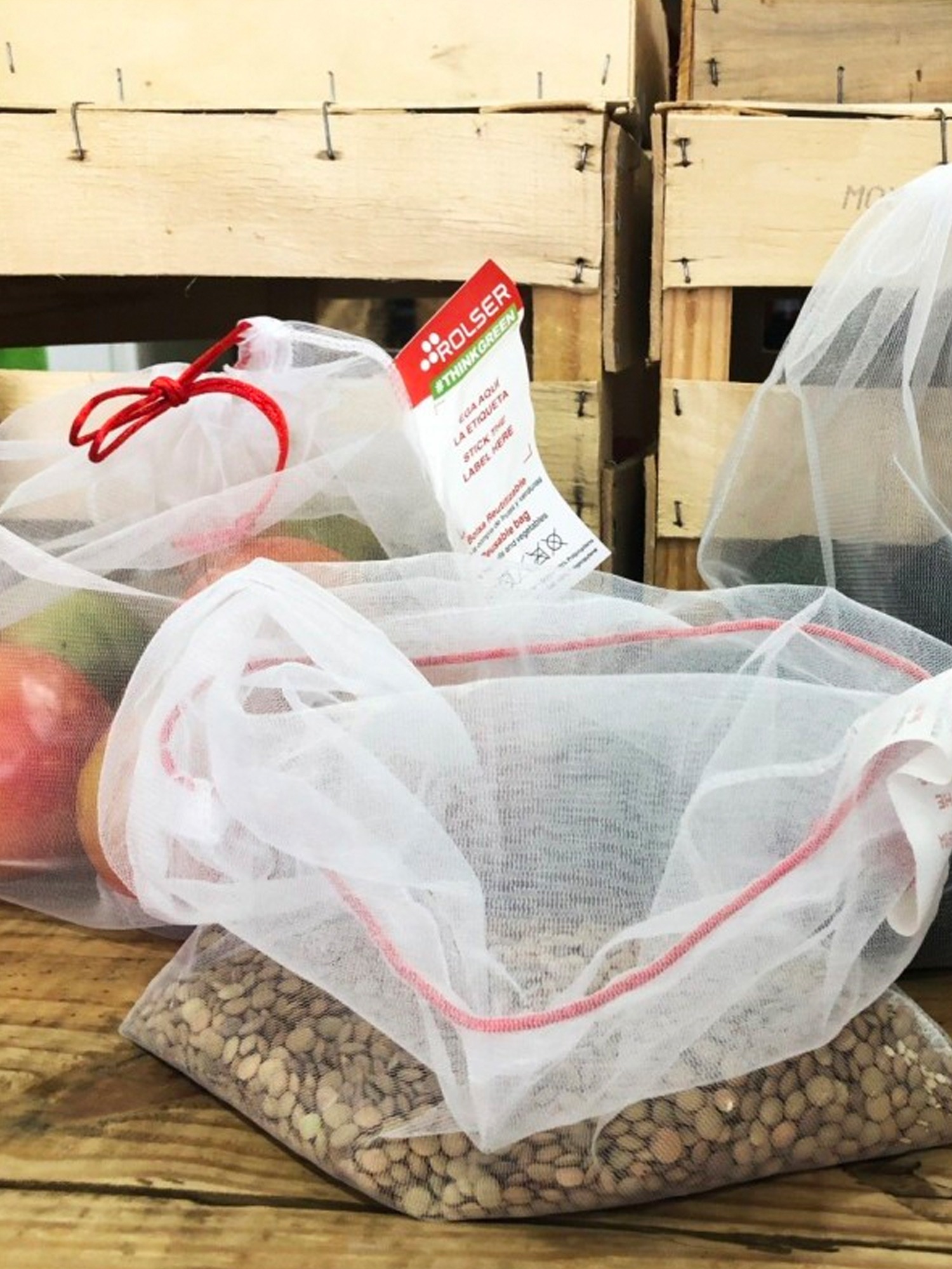REUSABLE PRODUCE BAG. Reusable mesh bag, 30 x 35 cm, for purchases and storage, washable and breathable. The bag of a thousand and one uses. An excellent choice for purchasing and storing fruits and vegetables in the fridge, where they last longer thanks to being free from the condensation that often causes mould when using plastic bags. Also great for storing other products in bulk such as lentils, chickpeas, nuts, etc., as well as potatoes, onions…, which, due to the bags being breathable, they allow air to pass through and the content to breathe. Lightweight and washable bag, either by hand or in the washing machine up to 40 ºC. Drawstring closure to open and close easily. Porous mesh design, avoiding the condensation caused by plastic bags. Other uses may be to store delicate clothes, socks, toys, cosmetics, electronic accessories, etc., either in cupboards or in suitcases when travelling. Another step towards a healthier and more environmentally friendly lifestyle. Let’s take care of our planet. Think Green !!