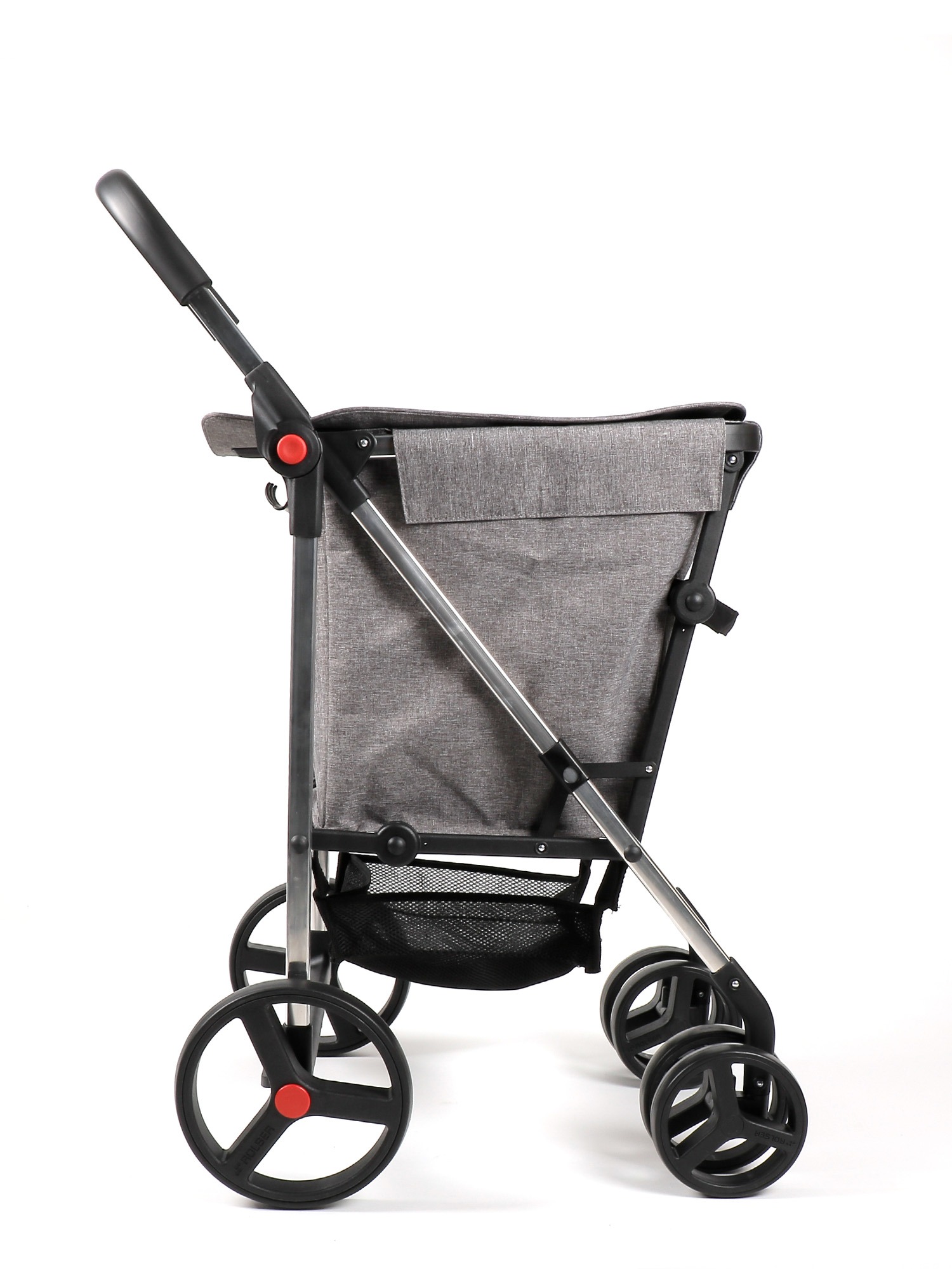 Basket allows transporting larger loads in a simple and convenient way, with 10 handle positions that make it 100% ergonomic, adaptable to each person and height. Its robustness and stability contrasts with its lightness thanks to the latest generation materials and its 4 wheels (the two front ones with 360º travel). The footrest it has been fitted with also makes it possible to easily overcome steps, obstacles, or different heights with a single support.