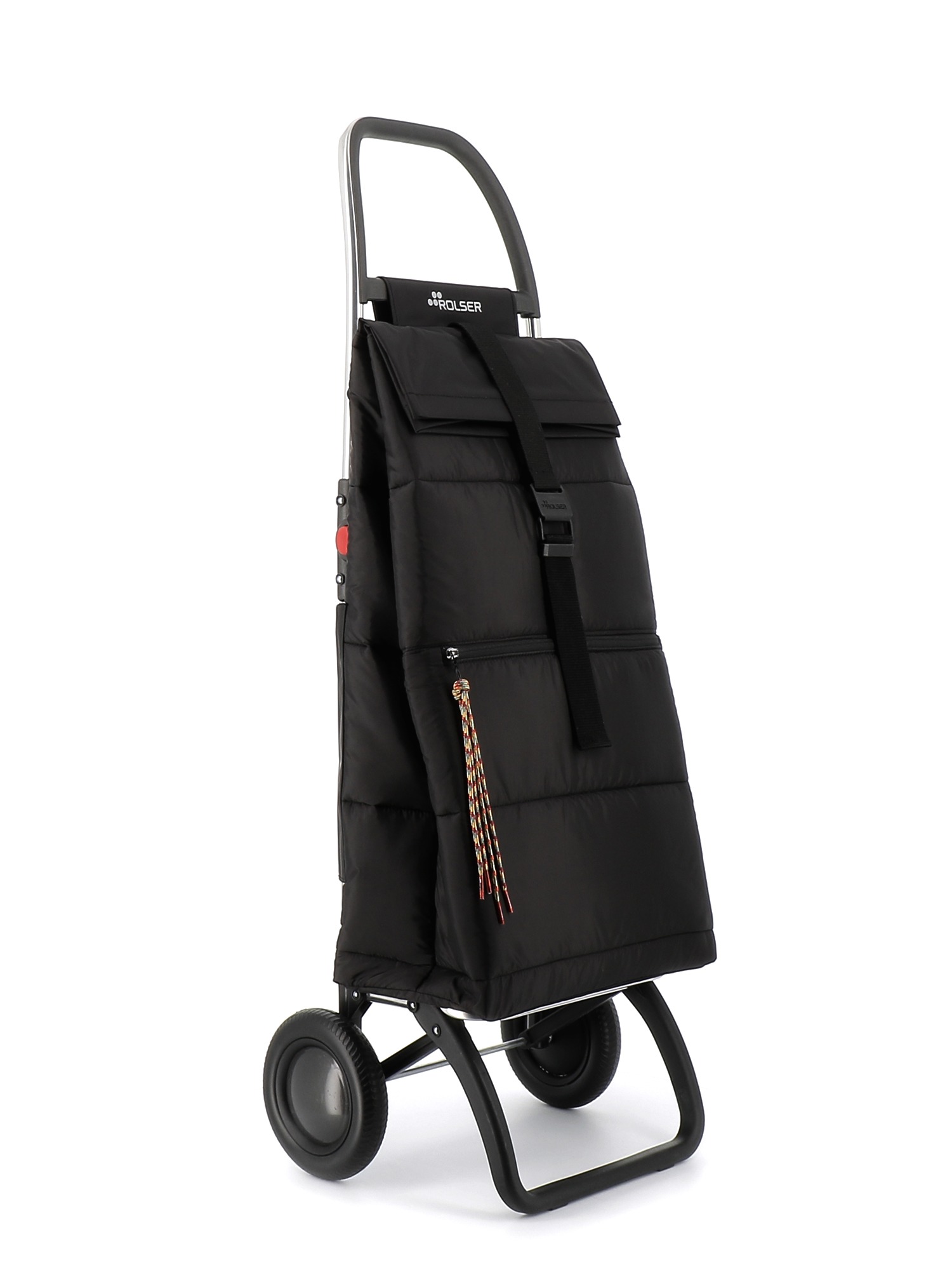 Rolser shopping trolley in folding aluminium with 2 wheels, to avoid unnecessary loads. The 2L chassis has a folding system forward for complete folding. Multifunctional hook adaptable hanger for supermarket trolleys and for hanging bags and/or other products. It will help you with any type of transfer of small loads. Perfect for carrying items to the laundrette, to the beach, shopping, fishing, to the gym, etc… The BIG POLAR bag comes with double inside pocket, zippered back pocket, flap with easy attachment to the chassis and zippered front pocket.