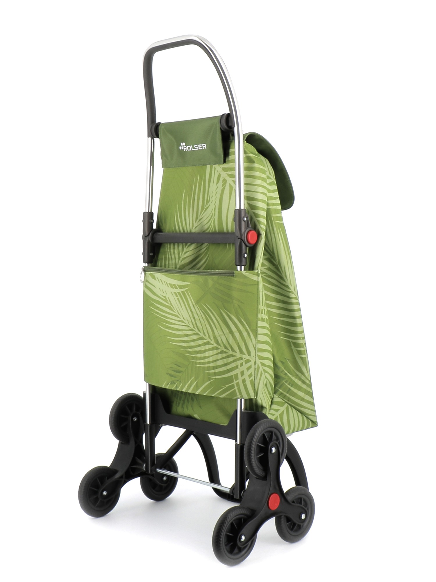 Rolser shopping trolley in folding aluminium with 6 wheels, to avoid unnecessary loads. Makes overcoming height easy: steps, pavements, etc. The 6L chassis has a folding system forward for complete folding. Multifunctional hook adaptable hanger for supermarket trolleys and for hanging bags and/or other products. The wheels are easy to remove and replace so it can be stored in the car, small spaces, etc. 6L has a frame to hold and protect the bag, front support and folding base. Perfect for carrying items to the the beach, shopping, fishing, to the gym, etc. The bag comes in backpack format, with double inside pocket, drawstring closure, eyelet on the flap, zippered back pocket and easily adapts to the chassis with a flap