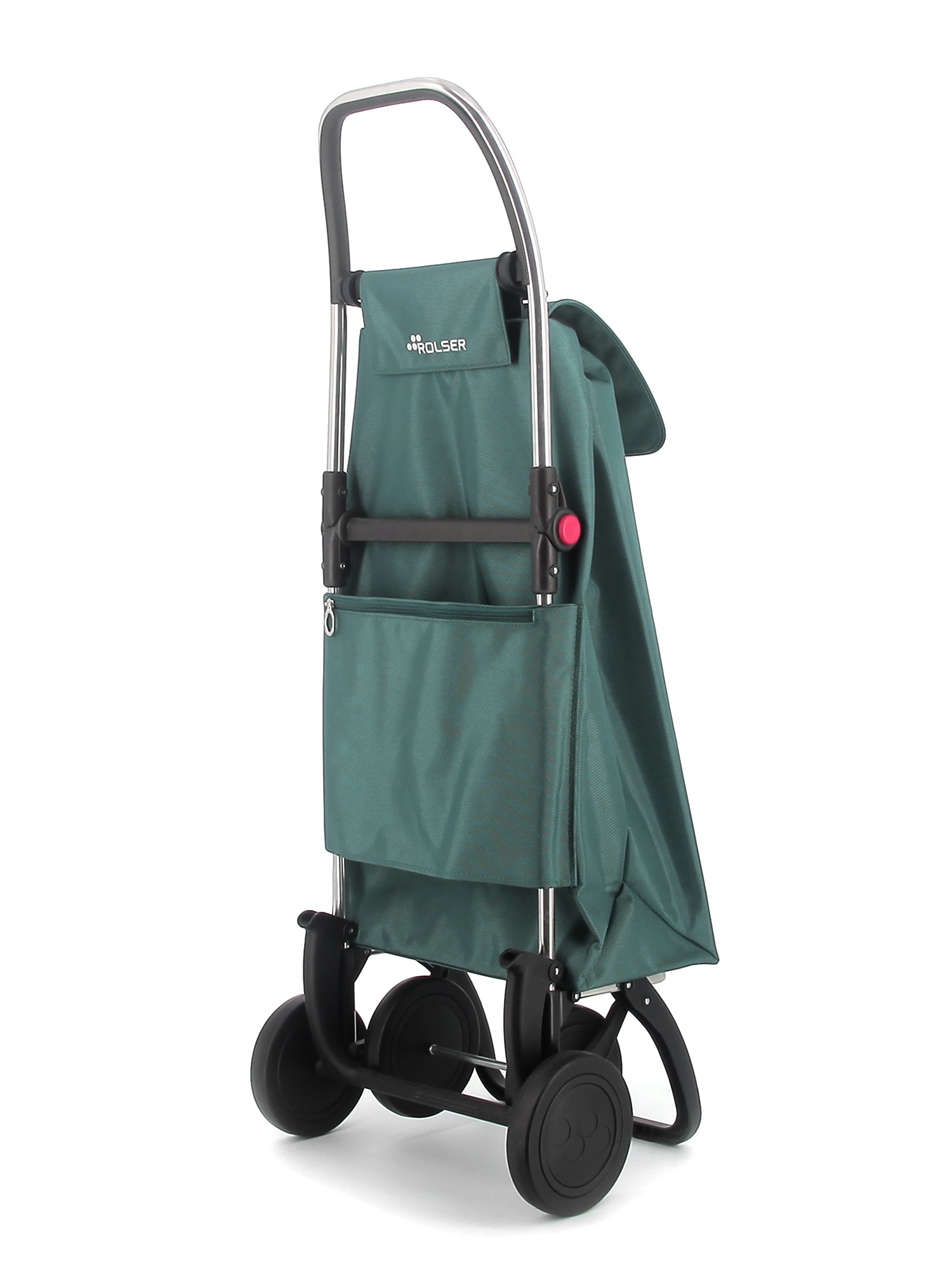 Rolser shopping trolley in folding aluminium with 2/4 wheels, to avoid unnecessary loads. In two-wheel position to pull along when empty, and in four-wheel position to push along when full. The 4L chassis has a system forward for complete folding. Multifunctional hook adaptable hanger for supermarket trolleys and for hanging bags and/or other products. It will help you with any type of transfer of small loads. Perfect for carrying items to the laundrette, to the beach, shopping, fishing, to the gym, etc. The I-MAX MF bag comes in backpack format, with double inside pocket, drawstring closure, eyelet on the flap, zippered back pocket and easily adapts to the chassis with a flap.