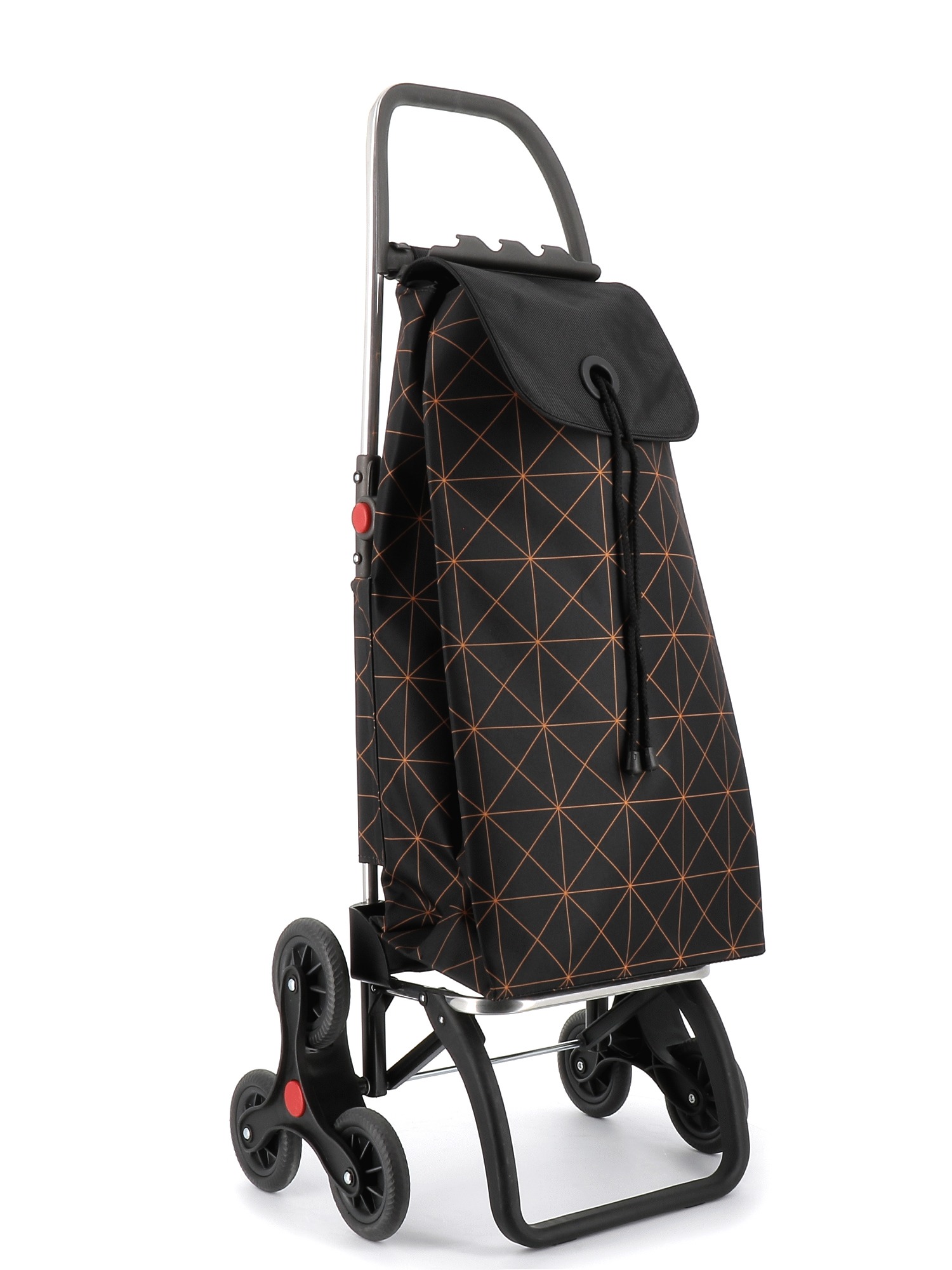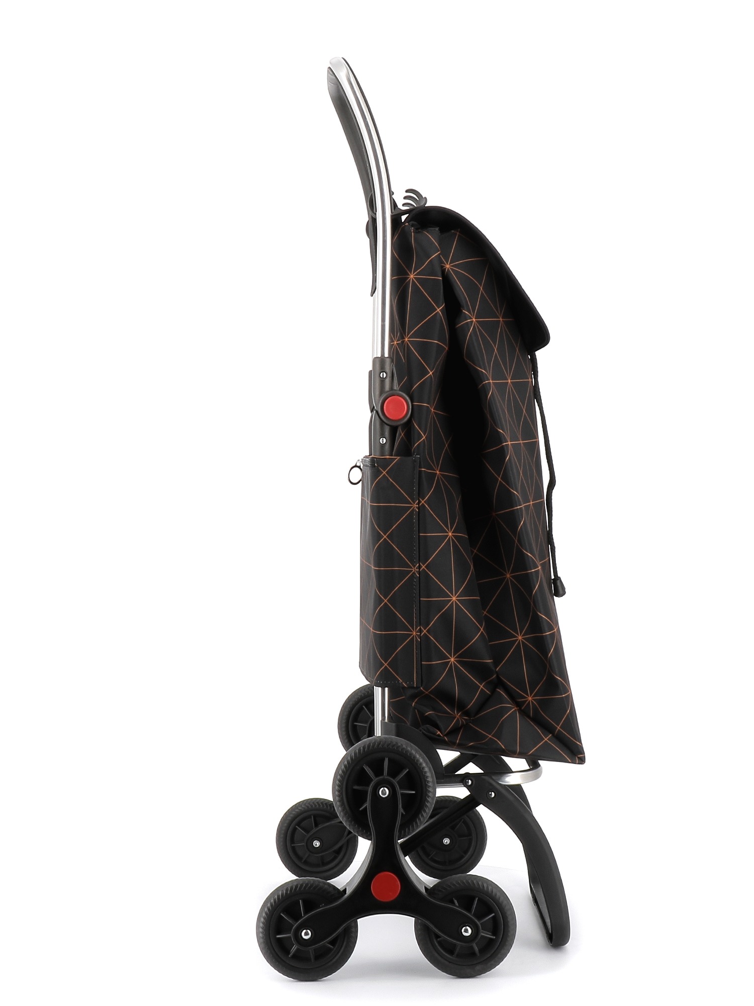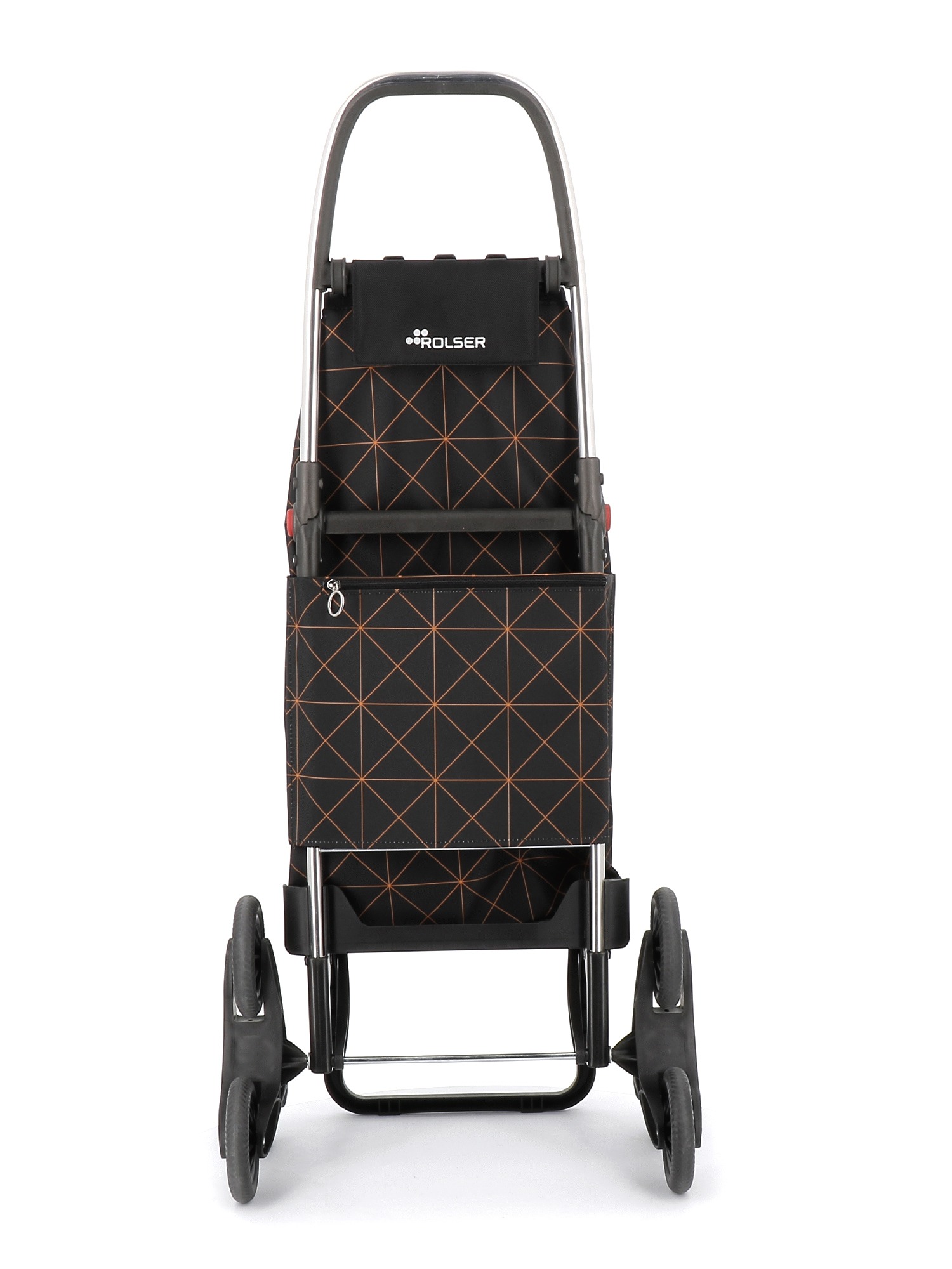 Rolser shopping trolley in folding aluminium with 6 wheels, to avoid unnecessary loads. Makes overcoming height easy: steps, pavements, etc. The 6L chassis has a folding system forward for complete folding. This chassis is fitted with an adaptable device for coupling to the supermarket trolley, to not have to leave it at the shop entrance. The wheels are easy to remove and replace so it can be stored in the car, small spaces, etc. 6L has a frame to hold and protect the bag, front support and folding base. Perfect for carrying items to the the beach, shopping, fishing, to the gym, etc. The bag comes in backpack format, with double inside pocket, drawstring closure, eyelet on the flap, zippered back pocket and easily adapts to the chassis with a flap