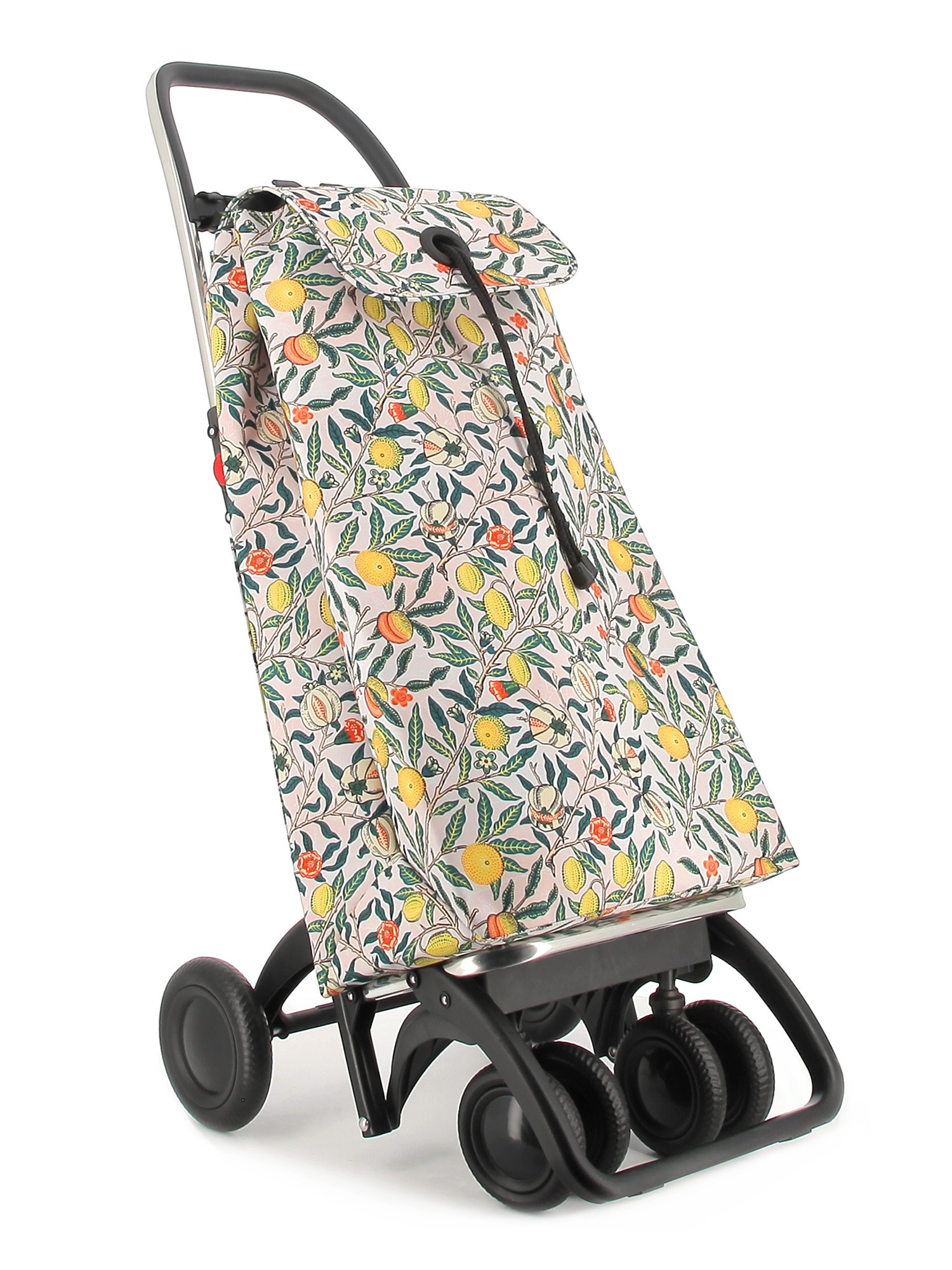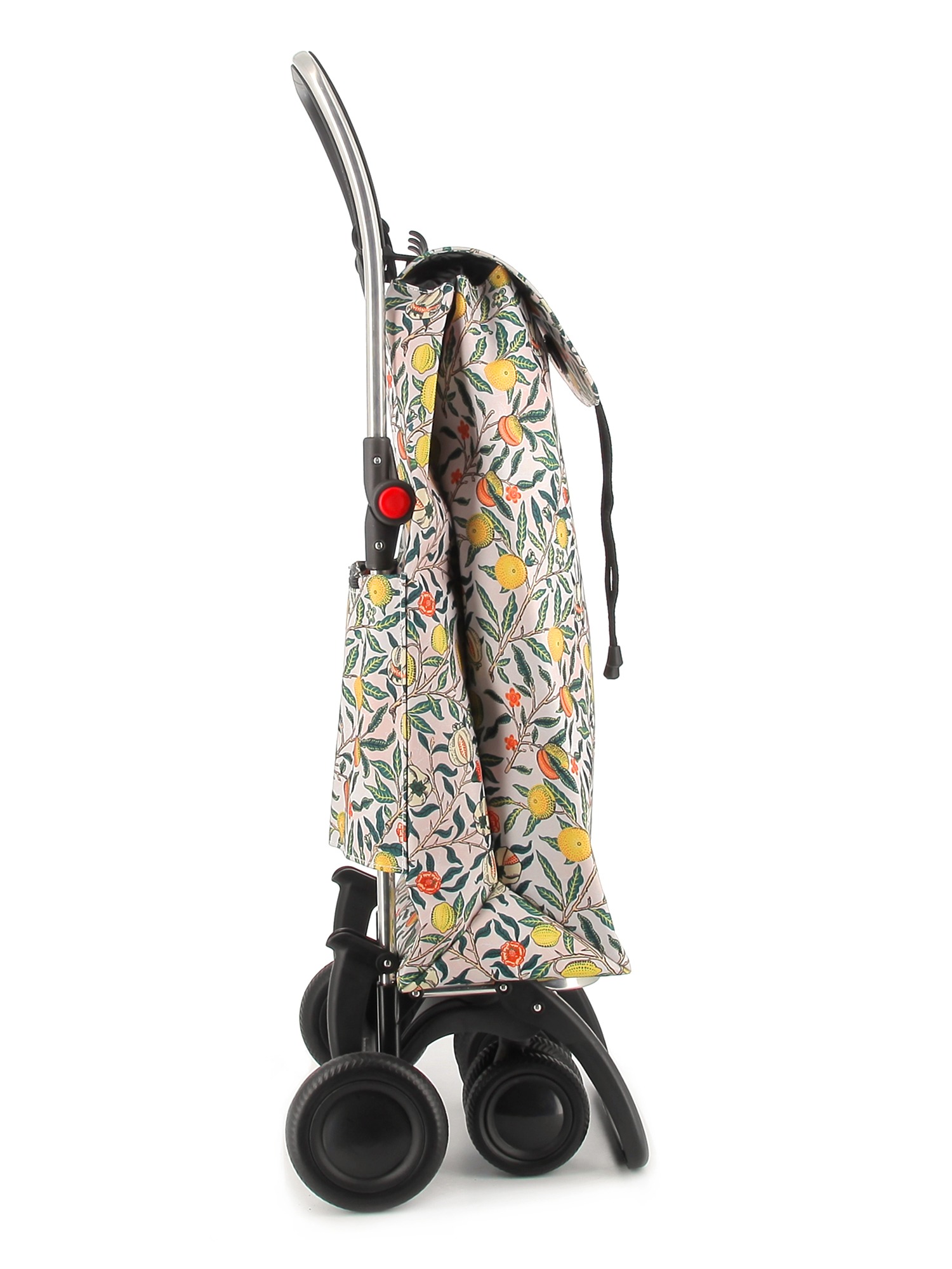 Rolser shopping trolley in folding aluminium with 2/4 wheels.In two-wheel position to pull along when empty, and in four-wheel position to push along when full. Is one of Rolser’s many technological advances. The design incorporates our rotating wheels system that allows you steer the trolley in a more convenient and precise manner. The 4LT chassis has a folding system forward for complete folding. Multifunctional hook adaptable hanger for supermarket trolleys and for hanging bags and/or other products. Perfect for carrying items to the laundrette, to the beach, shopping, fishing, to the gym, etc. The I-MAX William Morris bag comes in backpack format, with double inside pocket, drawstring closure, eyelet on the flap, zippered back pocket and easily adapts to the chassis with a flap.